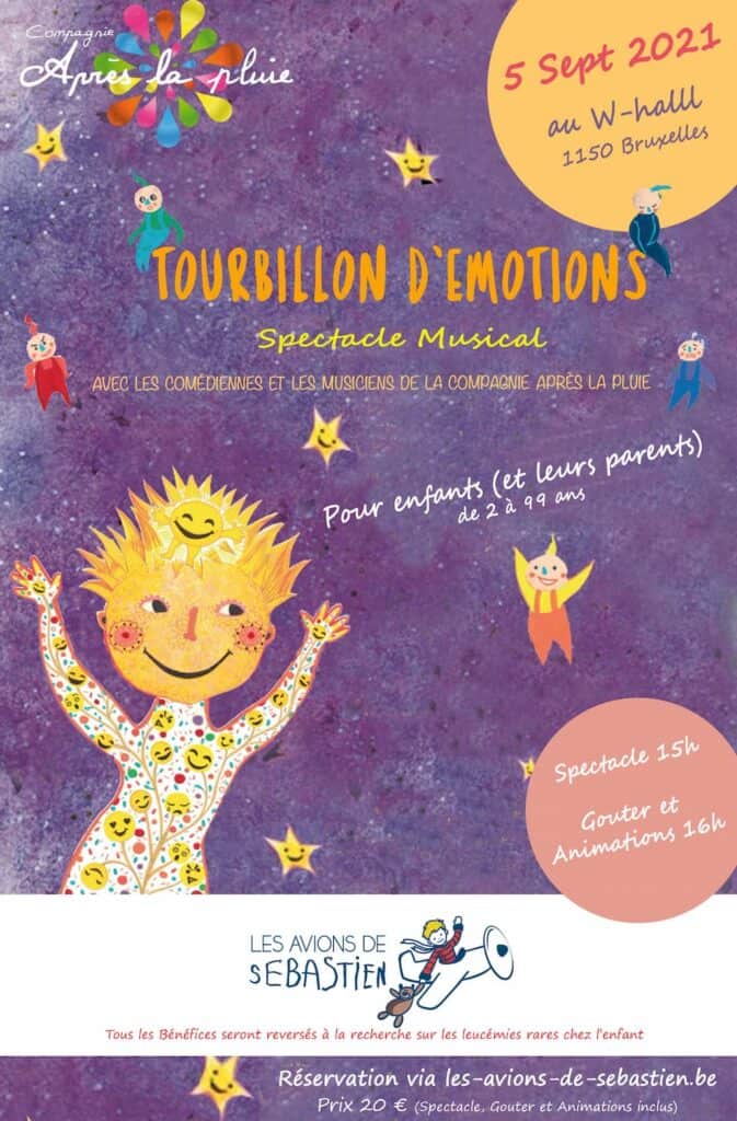 Al bijna 15 jaar werkt La Compagnie Après la Pluie… aan het verbeteren van het dagelijks leven van kinderen met kanker in het ziekenhuis door middel van artistieke creatie. Onze vereniging heeft natuurlijk een sterke band met dit bedrijf, dat Sébastien heeft ontdekt. Elke week ontmoet een team verhalenvertellers kinderen van de afdeling hemato-oncologie in La Timone (Marseille). Op basis van het werk dat in deze workshops met kinderen is gedaan, heeft het gezelschap een aantal prachtige voorstellingen vol vreugde, emotie, betekenis en hoop gemaakt, die het aanbiedt aan kinderen in het ziekenhuis. Ontdek samen met ons hun nieuwste creatie, “Tourbillons d’émotions”.